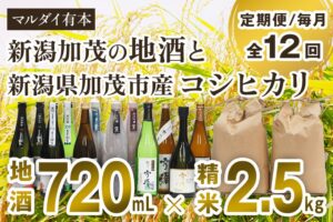 | 【定期便12ヶ月】2026年1月から発送 新潟加茂の地酒(720㎖1本)と 加茂産コシヒカリ2.5kgを毎月お届け |